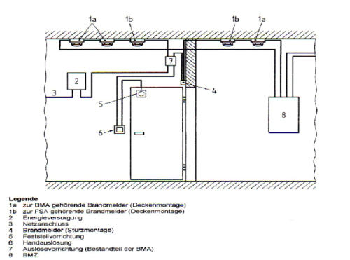 mindestens einem Branderkennungselement, z.B. optischer Rauchmelder oder Rauchschalter