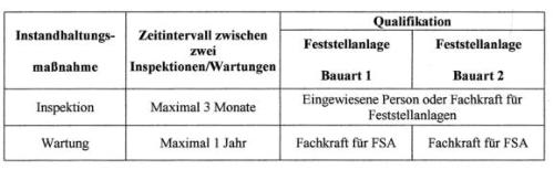 Inspektions-/Wartungsintervalle, sowie Qualifikation der Instandhalter